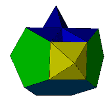 The result is imaged above right (28 faces). For the semi-hexagonal faces, the