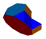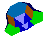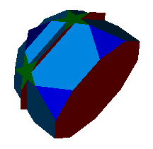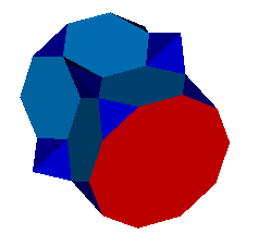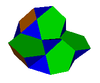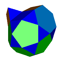 The minimal non-self-intersecting case can be improved upon if we permit self-intersection. Dr Richard Klitzing has studied the facets of the small icosicosidodecahedron amongst which was the above 28-faced figure, this is one of a number of 28-faced facets. It is chosen as it is the facet with the fewest vertices and edges. Dr Klitzing informs me that he has to date only studied facets with a three-fold or five-fold symmetry, so this result may still be improved upon.