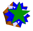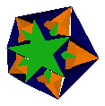 The pattern of the vertices is best seen on this vertex coloured model of a 5/2 spheno-corona which has the vertices coloured (A) red, (B) yellow, (C) green, (D) blue.