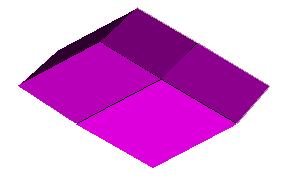 Commentary: The Rhombic Triacontahedron ('RTC') contains a number of 'bands' where all edges are parallel (RTC with one highlighted band). One such band can be removed and the remaining two parts of the RTC moved together to form a convex polyhedron with 20 faces, this can be termed a 'Reduced RTC' (it is perhaps more commonly known as the 'Rhombic Icosahedron'). The process can be repeated by the removal of a band from the reduced RTC (reduced RTC with one highlighted band) to give a 12 faced polyhedron, the 'Twice Reduced RTC' (also known as 'Bilinski's Rhombic Dodecahedron' or the 'Second Form of the Rhombic Dodecahedron'). This also contains bands, but the resulting hexahedral 'Three Times Reduced RTC' (two forms: A and B) are rhombo-flexible.
