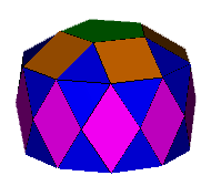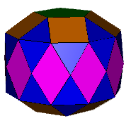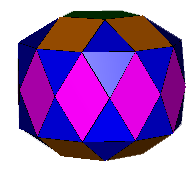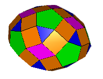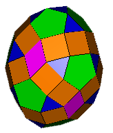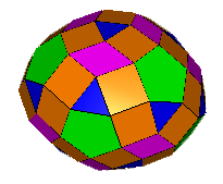 Commentary: The Expanded Rhombic Triacontahedron ('XRTC') can be produced from the Rhombic Triacontahedron by a process of expansion. Each face of the Rhombic Triacontahedron is moved outwards until there is a distance of one unit between each originally adjacent face. These gaps are filled by the insertion of square faces. The remaining holes, corresponding to the original vertices of the Rhombic Triacontahedron can be filled by triangles and pentagons.