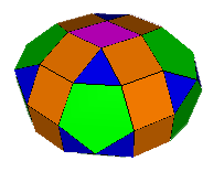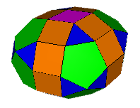 3.2 Decagonal Square Barrel plus pentagonal cupola (VRML, OFF) | 3.3 Decagonal Square Barrel plus two pentagonal cupolas (ortho) (VRML, OFF) | 3.4 Decagonal Square Barrel plus two pentagonal cupolas (gyro) (VRML, OFF) | ||||||||||||||||||||||||||||||||||||||||||