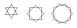 Interestingly, the form {p/2, p} also extends for n<7. For n=6, {6/2,6} is a uniform (planar) tessellation of 6/2-gons results (this example has one vertex highlighted). {5/2,5} is a small stellated dodecahedron. {4/2,4} is not a polyhedron as a 4/2-gon in this sense is a pair of crossed line segments. {3/2,3} is equivalent to {3,3} the tetrahedron (although in {3/2,3} all the triangles are retrograde.