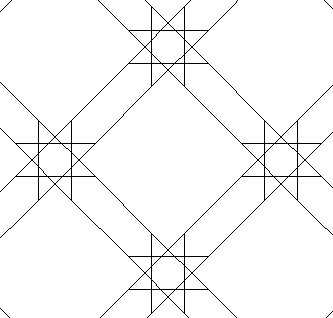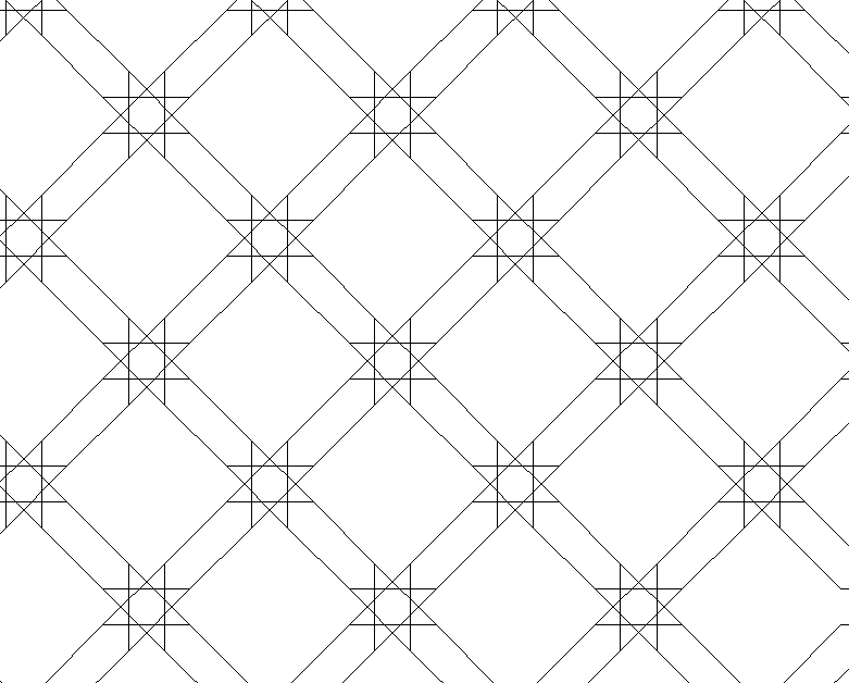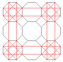 The above edge network is a faceting is of the cells of a 8,8,4 tessellation, replacing each octagon with an octagram sized such that the vertices of octagrams in neighbouring octagons are one unit apart. A copy of this network superimposed on the original 8, 8, 4 tessellation is linked here.