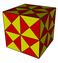 quasiregular tetratetrahedron with two distinct sets of 4 faces.