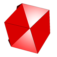 A systematic search was made where both 'seed' and 'shell' polyhedra were quasiregular. In this case the distinction between the two becomes arbitrary so I refer to both as shells. In addition to the octahedral case below, there are nine distinct icosahedal possibiliities in total, of which two resulted in crossed rectangular polyhedra.