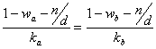rearrange to obtain the value of n/d at which the height of EEBs (ka,wa) and (kb,wb) coincide at: