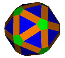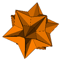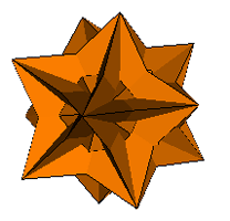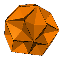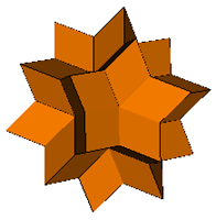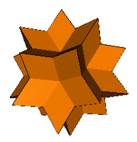 (1) above, has the rhombi coplanar in sets of three and is a stellation of the icosahedron that superficially resembles a great icosahedron