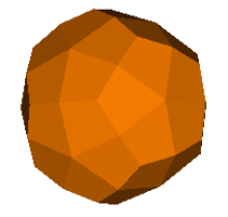 Two further examples occur amongst the duals to the uniform polyhedra, the great rhombic triacontahedron (dual to the great icosidodecahedron) and the medial rhombic triacontahedron (dual to the dodecadodecahedron).