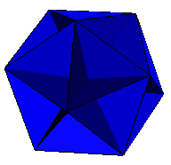** The deltahedron derived from augmenting the great stellated dodecahedron superficially resembles great icosahedron but each icosahedral face contains three coplanar triangles.