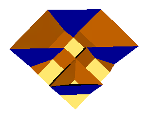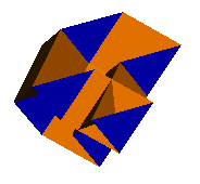 This 'space invader' is actually an isomorph of a uniform polyhedron, it shares the same net as the rhombicuboctahedron. It's derivation is described below.
