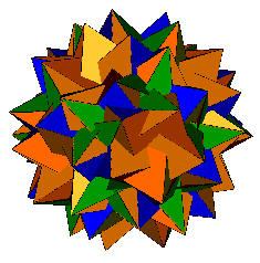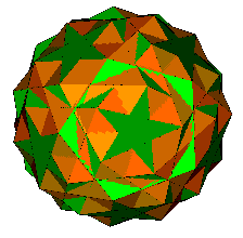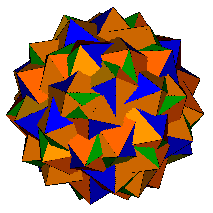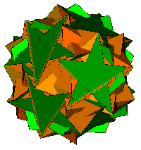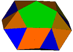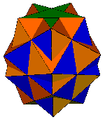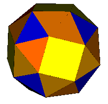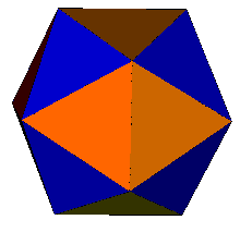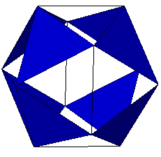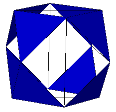 An unusual deformation of polyhedra can be constructed by taking a cuboctahedron with the square faces removed leaving eight triangular faces joined at the vertices (above left). If we allow these vertices to deform, we can twist this figure to resemble an icosahedron (above middle). A further twist collapses the figure to an octahedron (above right). This figure was first described by Buckminster Fuller, who coined it a 'Jitterbug'. A formal mathematical description of the process, and an enumeration of the Jitterbug-like set (which he terms 'dipolygonids') was completed by Dr Hugo Verheyen in his paper: "The complete set of jitterbug transformers and the analysis of their motion" a. Comp. Math. Appl., 17, Pergamon, 203-250. Oxford, 1989. b. Symmetry 2: Unifying Human Understanding, ed. I. Hargittai. Pergamon, Oxford, 1989.